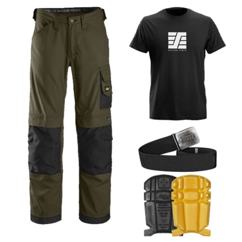 Snickers 3211 Kit Inc 9110 Kneepads & SnickersDirect T-Shirt, PTD Belt, Snickers TrousersDescrip..