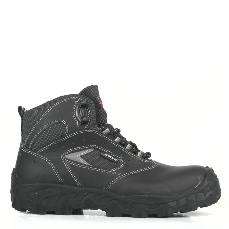 The Cofra Weddell is a very popular boot with those who are looking for metal free safety footwear. The Evanit footbed guarantees a stable a comfortable fit while the prominent toe cap and heel area give the Weddell extra durability.