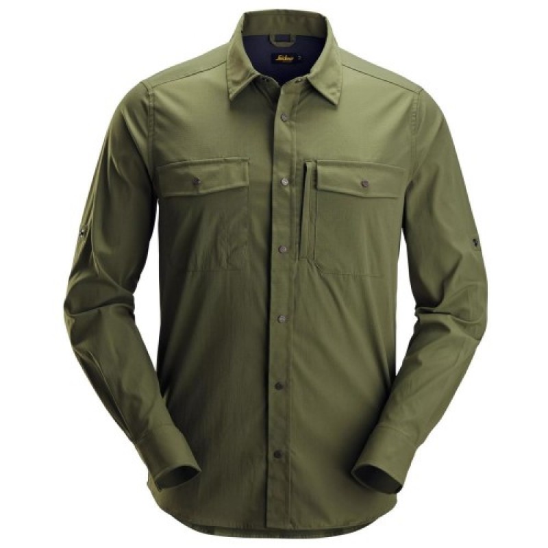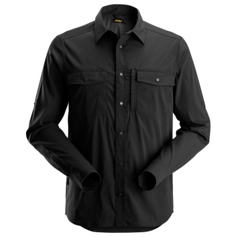 Lightweight long-sleeve shirt that offers efficient breathability for optimal cooling during work in hot outdoor conditions. The shirt is made of a nylon and elastane fabric. The stretchy shirt features mesh inside the back yoke for enhanced ventilation. In addition, the garment also comes with a buttoned patch pocket with pocket flaps, and a hidden zip pocket behind the patch pocket. UPF 50+.
