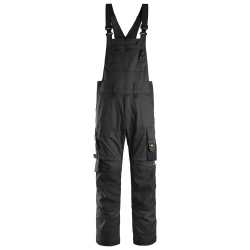 Snickers 6051 AllroundWork Stretch Bib & Brace TrousersModel: 6051DescriptionClassic bib and brace work trousers made of a soft cotton and polyester fabric. The trousers feature elastic rib at upper sides and 4-way stretch at back for optima fit and comfort. In addition, the garment comes with adjustable braces, chest pocket with zipper, pre-bent legs and KneeGuard™ system.Features- Soft cotton and polyester fabric.